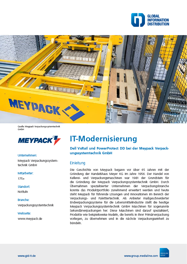 Bei der Meypack Verpackungssystemtechnik GmbH, ein Unternehmen der Verpackungsbranche, wurde die Wartung der alten Infrastruktur über viele Jahre hinweg nicht optimal umgesetzt und es kam zu Hardware-Ausfällen. Mit der neuen Lösung wurde eine moderne Datensicherung mit ausreichend Speicherplatz umgesetzt.